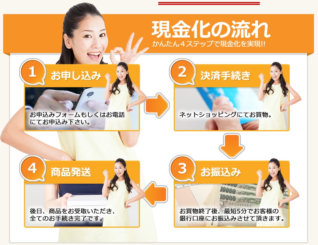 対応が早く、条件が良い現金化サイトをいくつか紹介しておきますので、ぜひ参考にしてみてください。