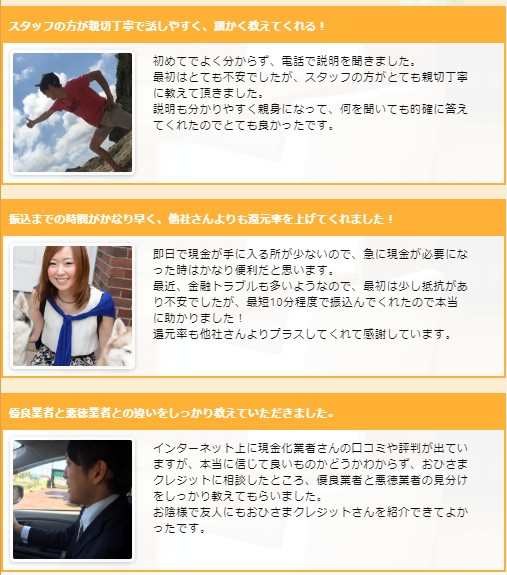 おひさまクレジットでは、公式サイトに利用者の声を載せています。